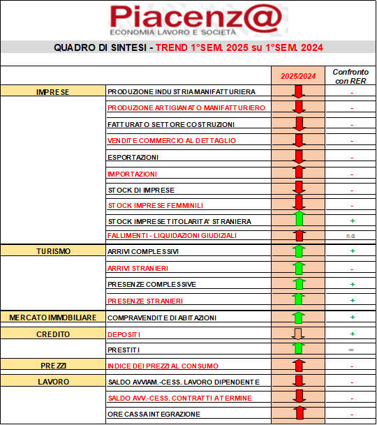 Nel corso dei primi sei mesi del 2025, l’economia piacentina - seguendo quella regionale e nazionale in un contesto caratterizzato dalla permanenza di tensioni geopolitiche internazionali, e aggravatosi a causa dell’aggressiva politica commerciale protezionistica avviata in questo periodo dagli Stati Uniti - ha proseguito lungo un